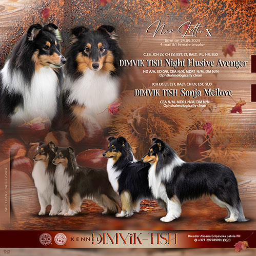 2025.gada 24. septembrī LKF/FCI audzētavā DIMVIK TISH piedzima trīskrāsaini šeltija šķirnes kucēni,kuri novembra beigās